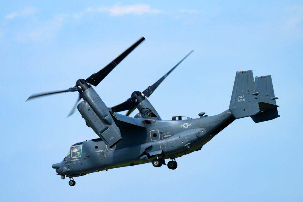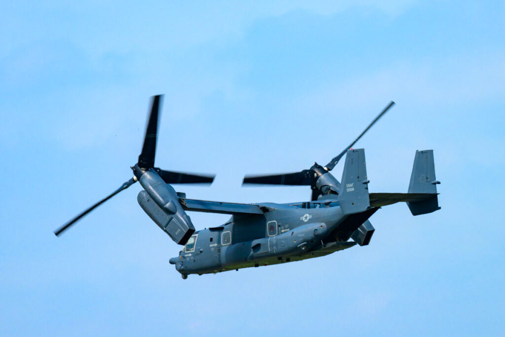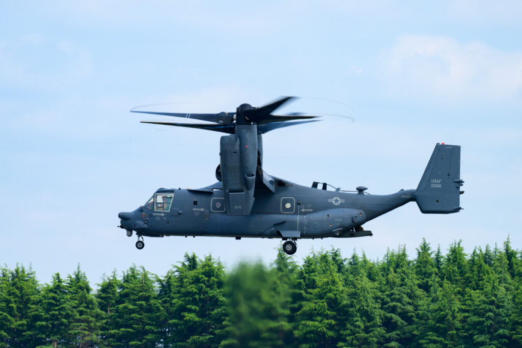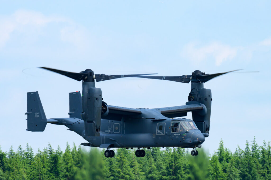 大型の輸送ヘリCH-47よりも騒音が小さく、行動範囲も広く、さらに高速で移動ができます。