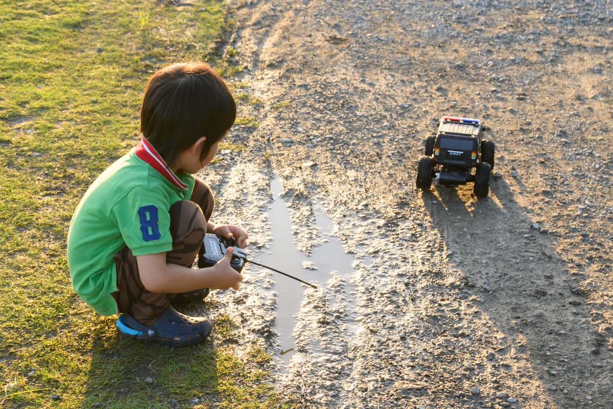 しかも水溜りに突撃するのはラジコンだけで、お洋服は汚れないからママもニッコリ
