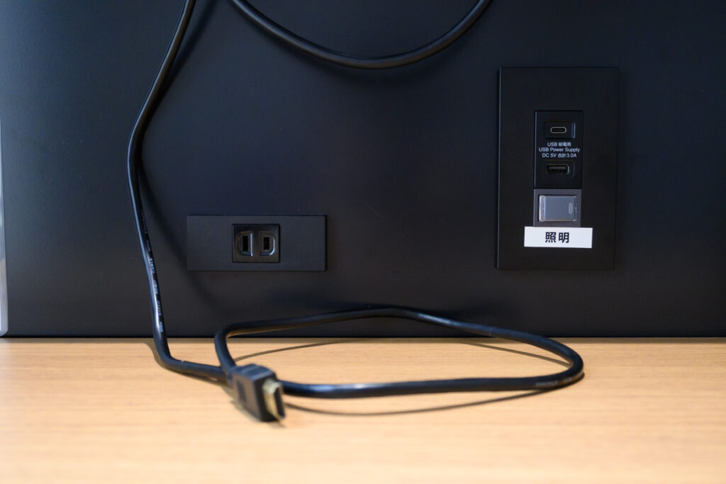 電源はACが一つ、USB-AとUSB-Cのコネクタ(3A)がそれぞれ一つついている。