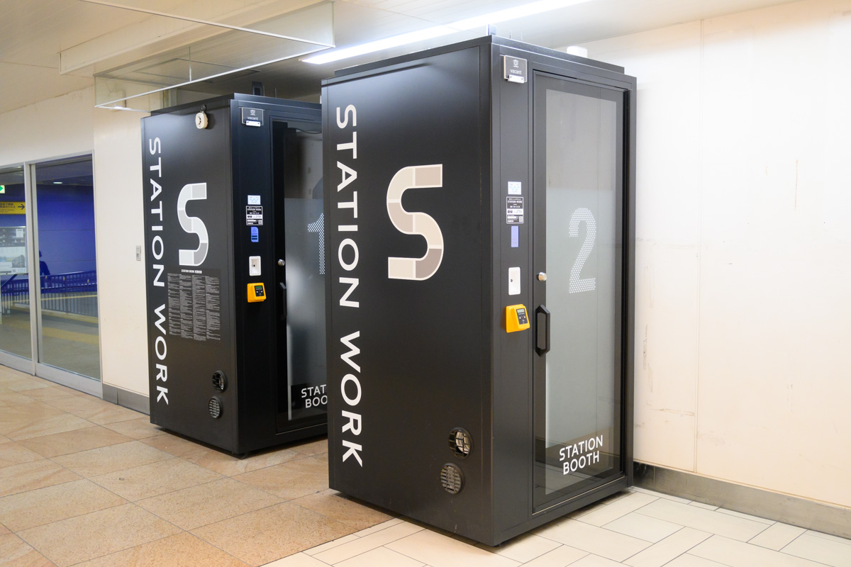 今回試してみたのはSTATION WORKというJR東日本が提供しているサービスで、駅にある大きめの電話ボックス状のものはSTATION BOOTHと呼ばれるタイプのもの。